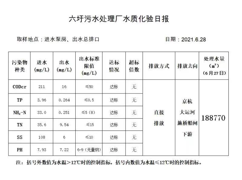 六圩污水处理厂水质化验日报(2021.6.28)