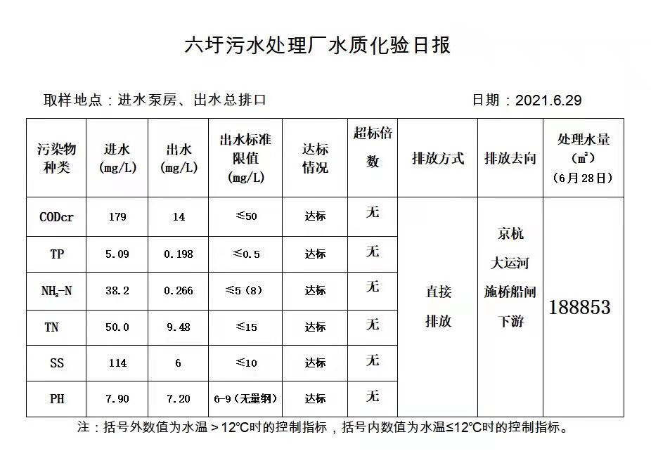 六圩污水处理厂水质化验日报(2021.6.29)