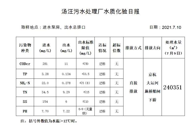 汤汪污水处理厂水质化验日报(2021.7.10)