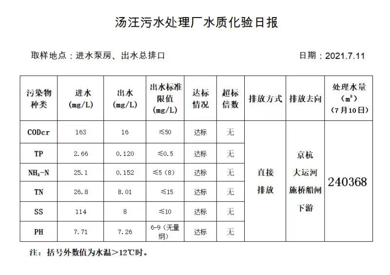 汤汪污水处理厂水质化验日报(2021.7.11)
