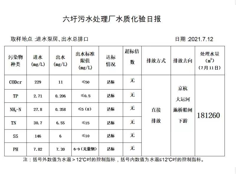 六圩污水处理厂水质化验日报(2021.7.12)