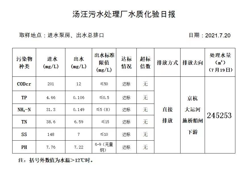 汤汪污水处理厂水质化验日报(2021.7.20)