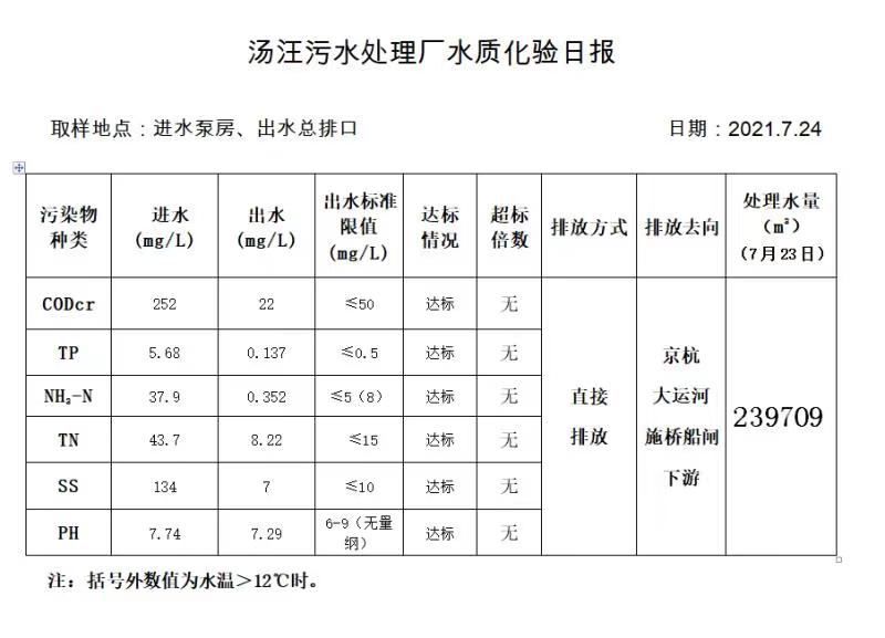 汤汪污水处理厂水质化验日报(2021.7.24)