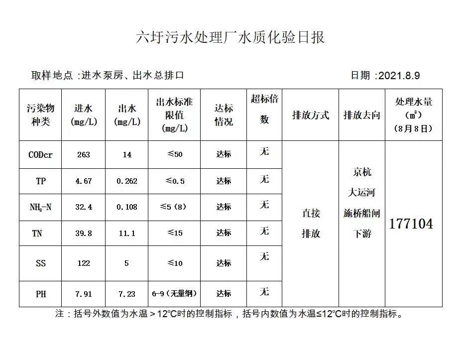 六圩污水处理厂水质化验日报(2021.8.9)