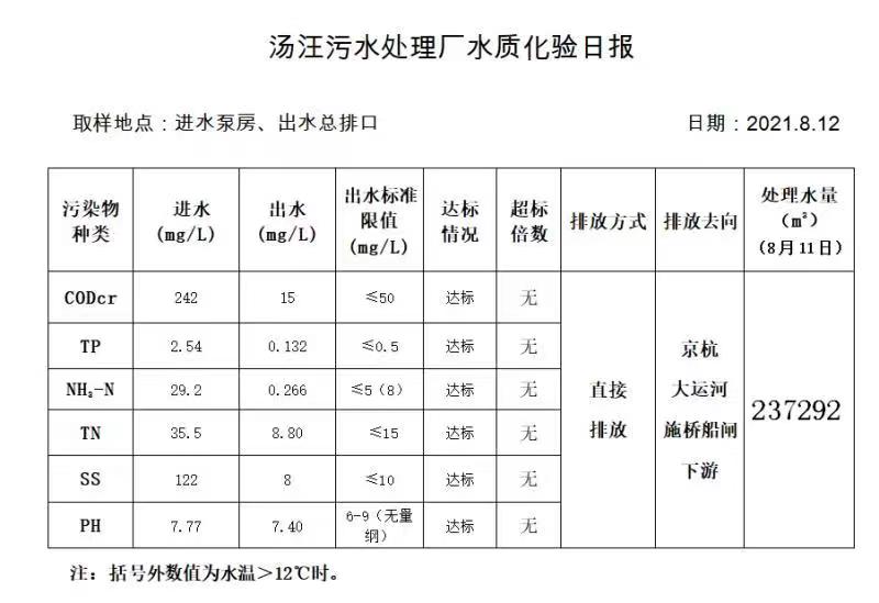 汤汪污水处理厂水质化验日报(2021.8.12)
