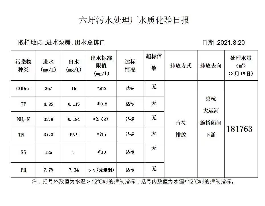 六圩污水处理厂水质化验日报(2021.8.20)