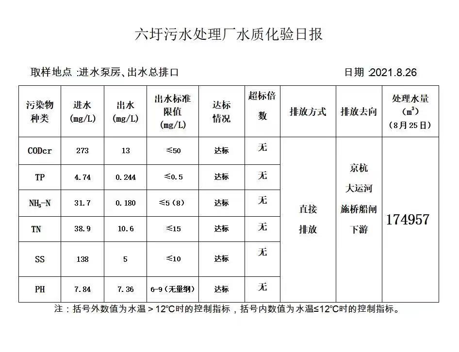 六圩污水处理厂水质化验日报(2021.8.26)