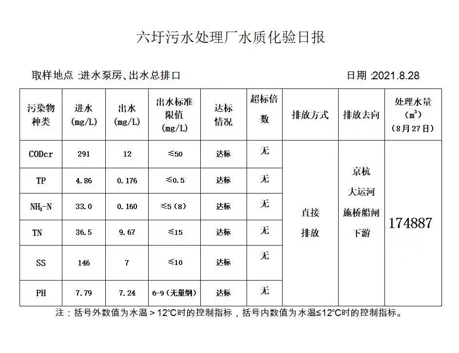 六圩污水处理厂水质化验日报(2021.8.28)