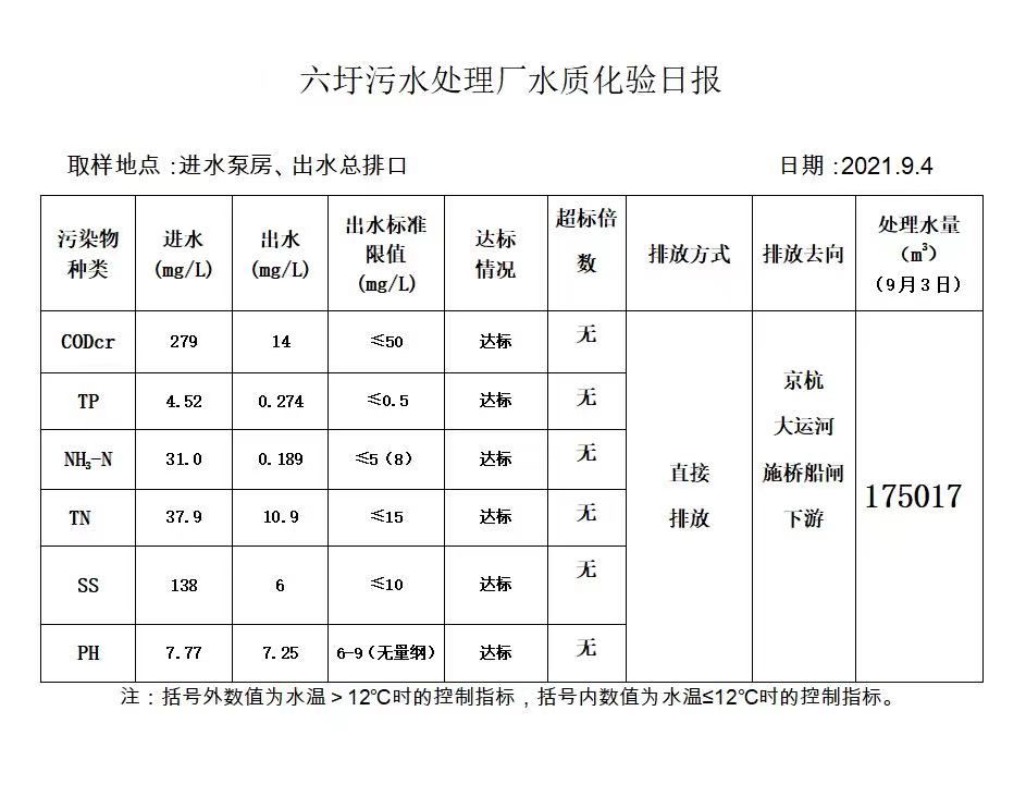六圩污水处理厂水质化验日报(2021.9.4)