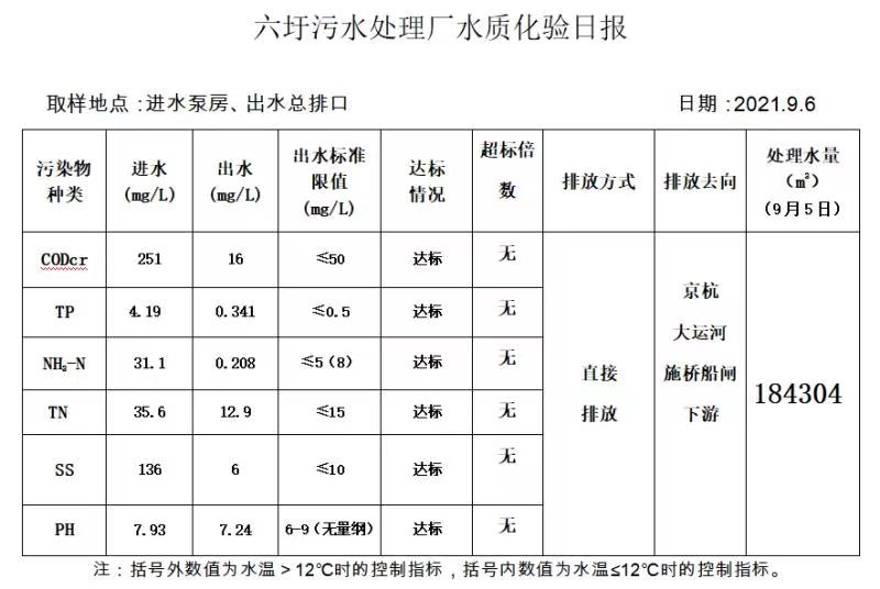 六圩污水处理厂水质化验日报(2021.9.6)