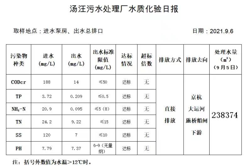 汤汪污水处理厂水质化验日报(2021.9.6)