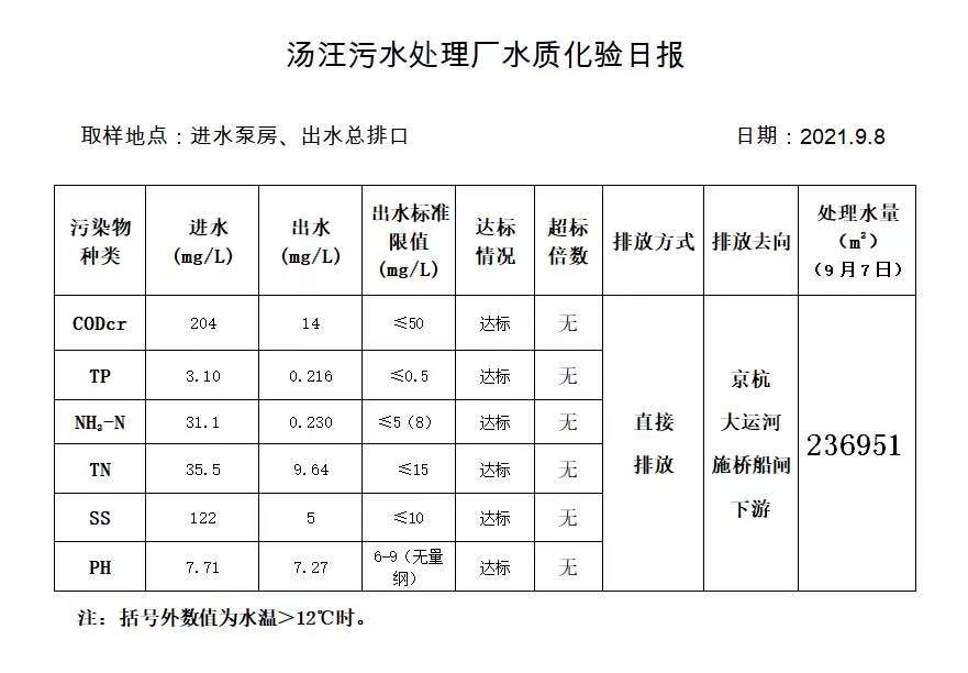 汤汪污水处理厂水质化验日报(2021.9.8)