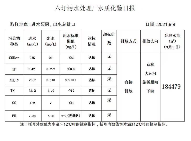 六圩污水处理厂水质化验日报(2021.9.9)