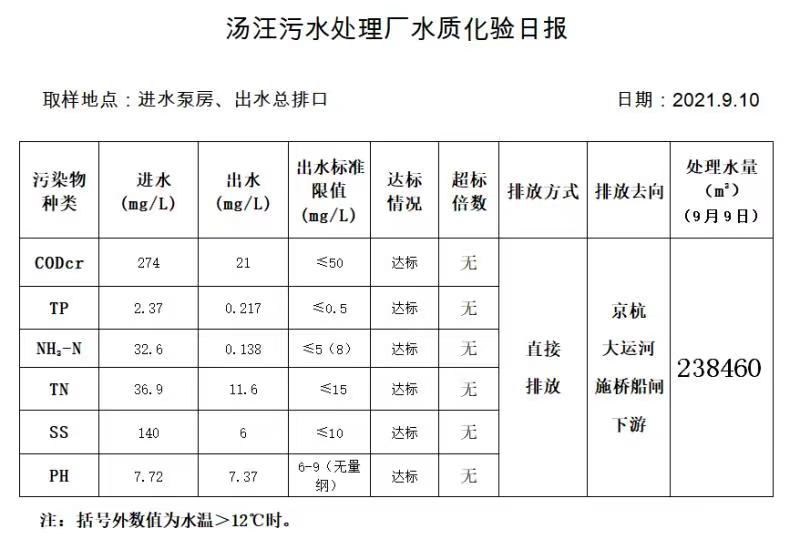 汤汪污水处理厂水质化验日报(2021.9.10)