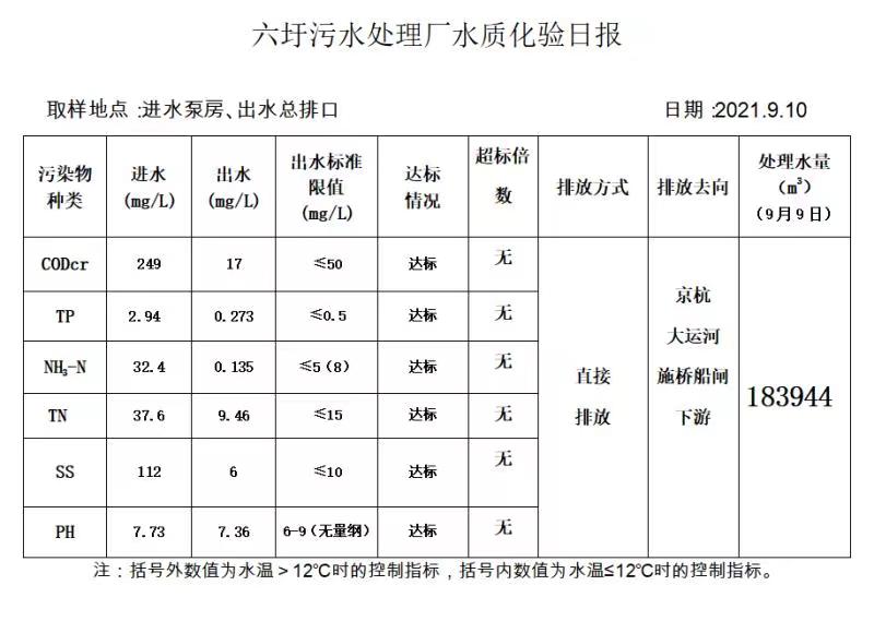 六圩污水处理厂水质化验日报(2021.9.10)