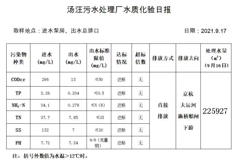汤汪污水处理厂水质化验日报(2021.9.17)