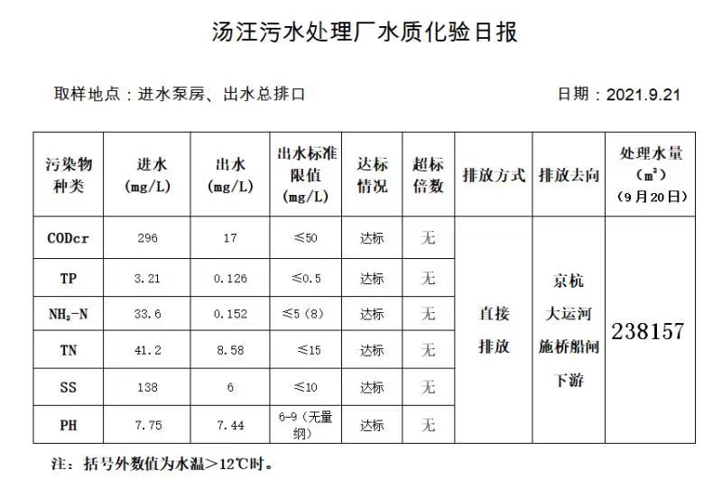 汤汪污水处理厂水质化验日报(2021.9.21)