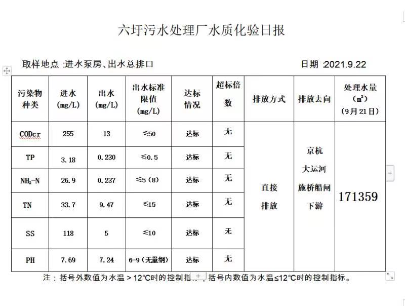 六圩污水处理厂水质化验日报(2021.9.22)