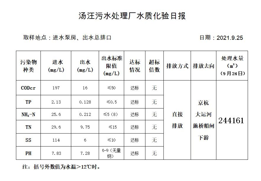 汤汪污水处理厂水质化验日报(2021.9.25)