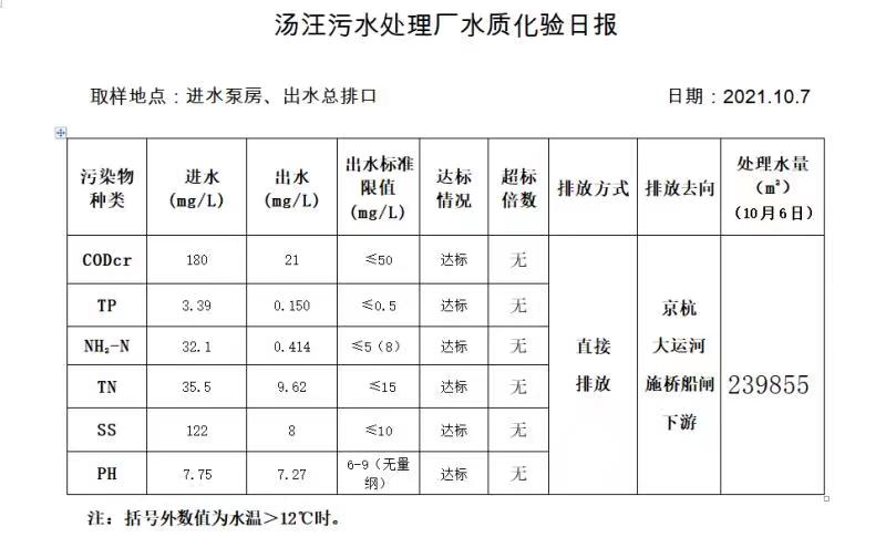 汤汪污水处理厂水质化验日报(2021.10.7)