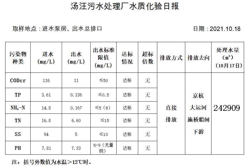 汤汪污水处理厂水质化验日报(2021.10.18)