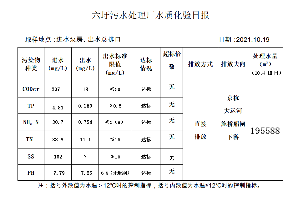 六圩污水处理厂水质化验日报(2021.10.19)