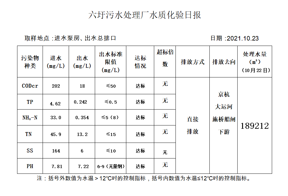 六圩污水处理厂水质化验日报(2021.10.23)