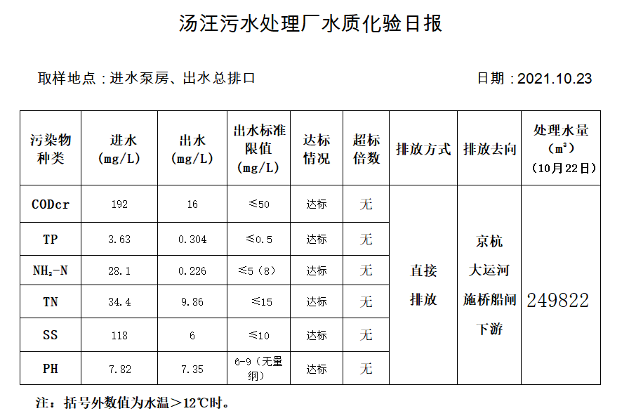 汤汪污水处理厂水质化验日报(2021.10.23)