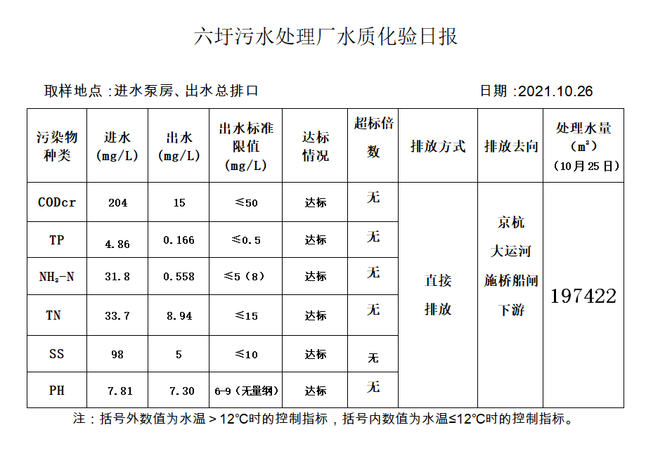 六圩污水处理厂水质化验日报(2021.10.26)