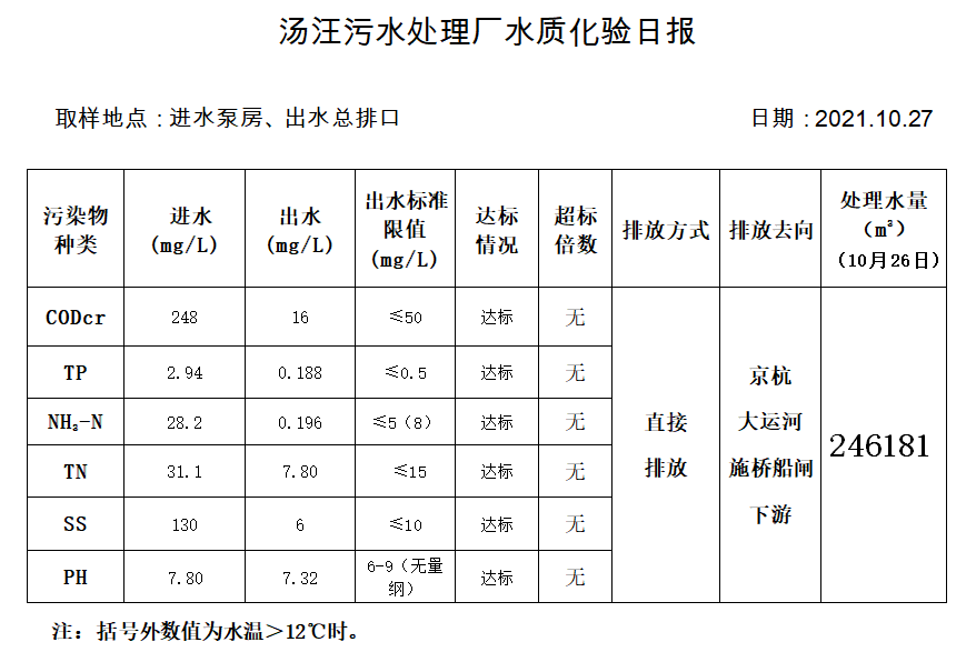 汤汪污水处理厂水质化验日报(2021.10.27)