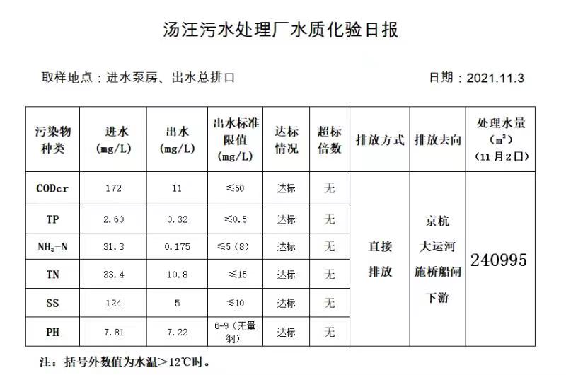 汤汪污水处理厂水质化验日报(2021.11.3)