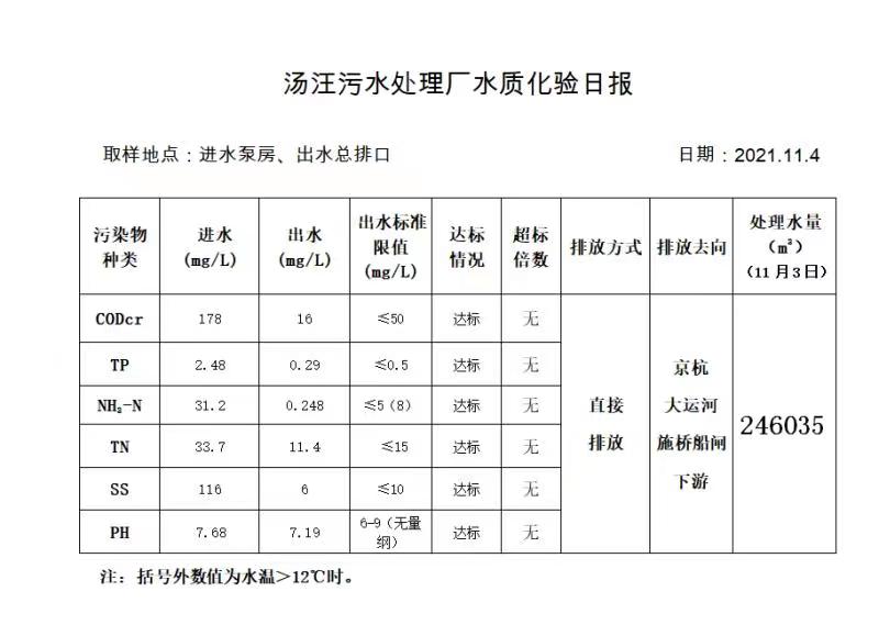 汤汪污水处理厂水质化验日报(2021.11.4)
