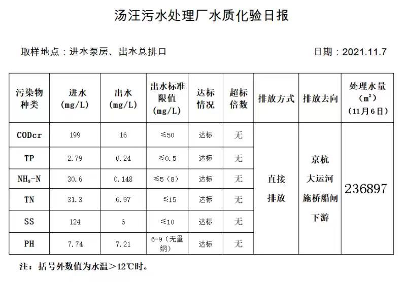 汤汪污水处理厂水质化验日报(2021.11.7)