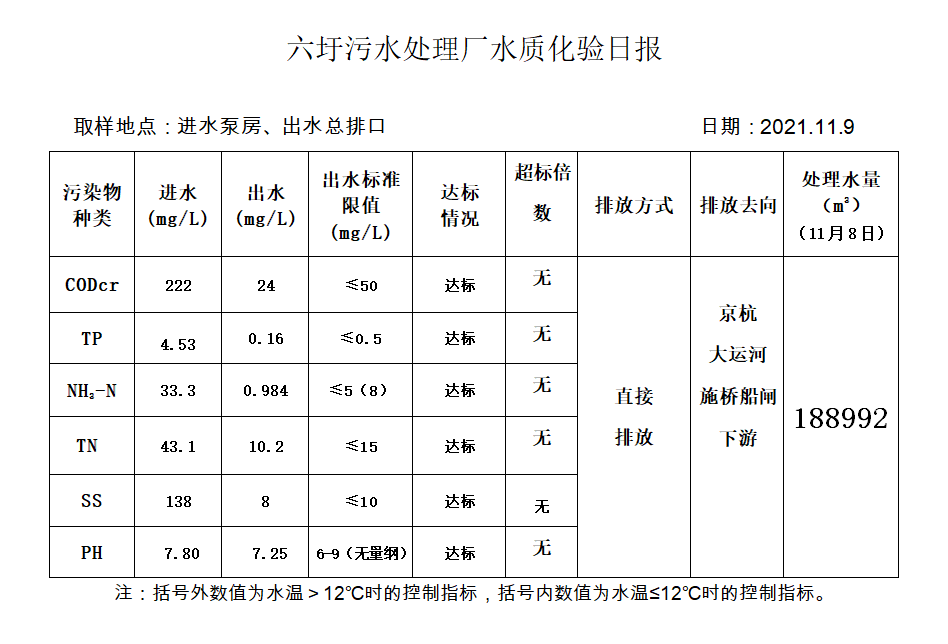 六圩污水处理厂水质化验日报(2021.11.9)