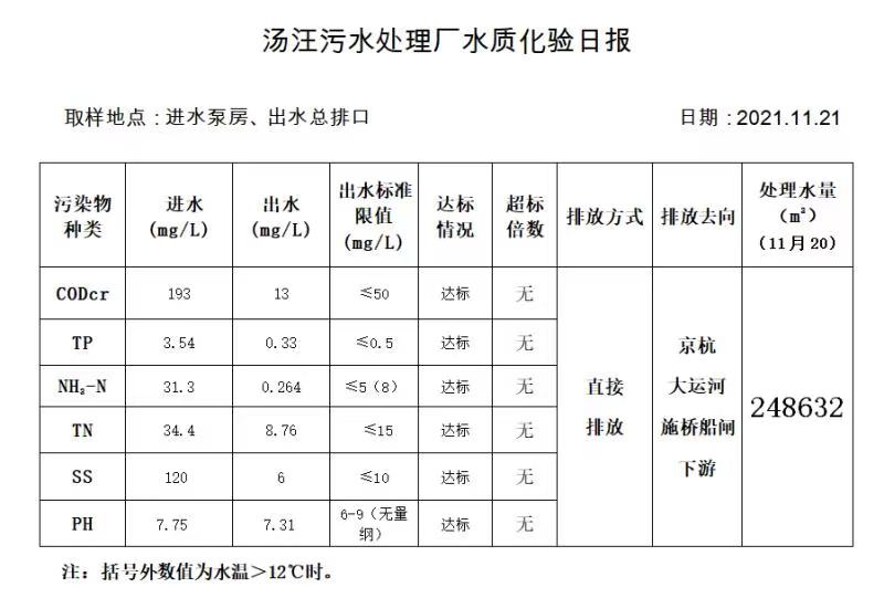 汤汪污水处理厂水质化验日报(2021.11.21)