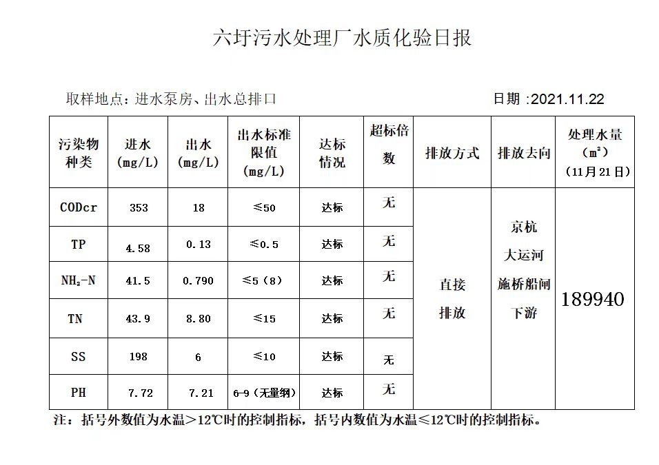 六圩污水处理厂水质化验日报(2021.11.22)