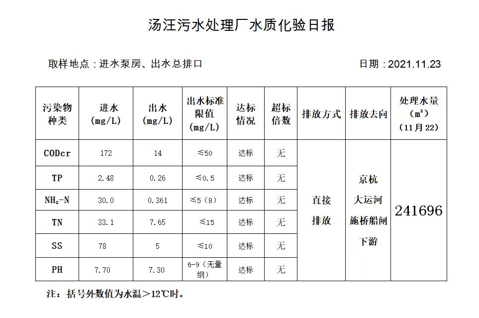 汤汪污水处理厂水质化验日报(2021.11.23)