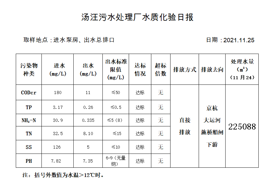 汤汪污水处理厂水质化验日报(2021.11.25)