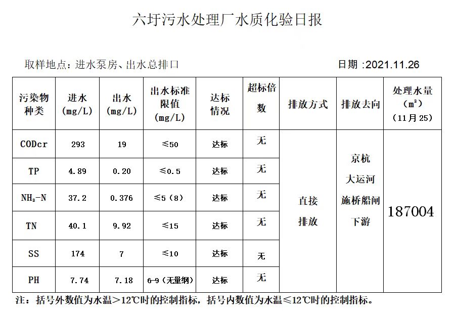 六圩污水处理厂水质化验日报(2021.11.26)