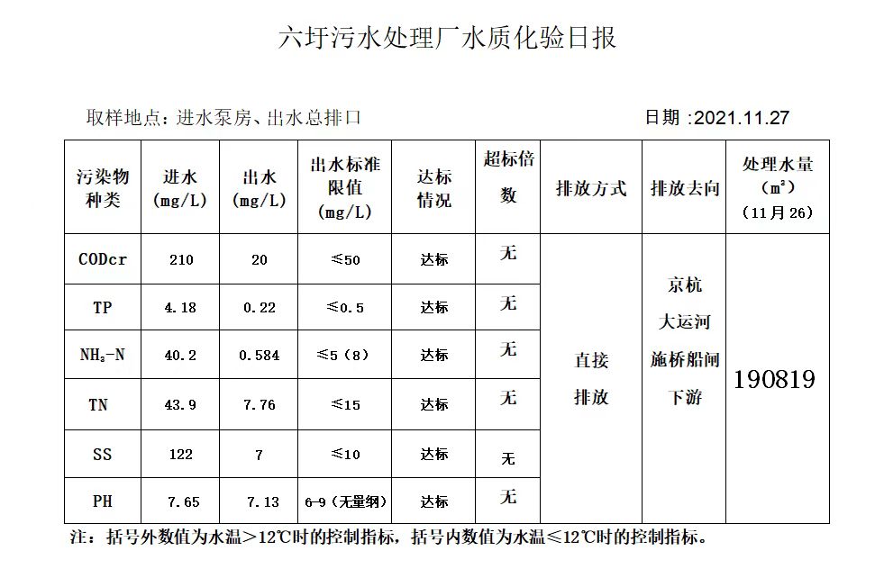 六圩污水处理厂水质化验日报(2021.11.27)