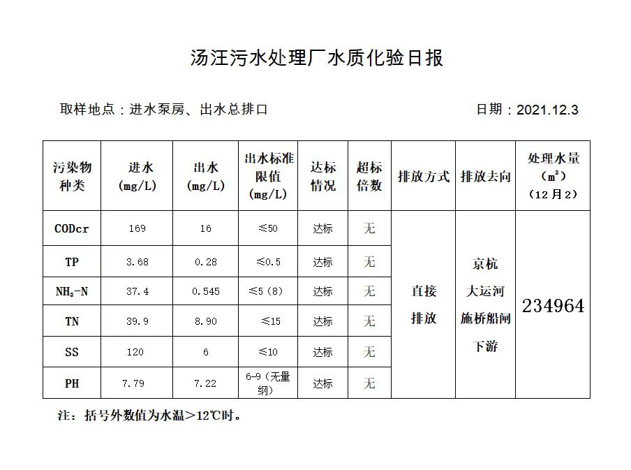 汤汪污水处理厂水质化验日报(2021.12.3)