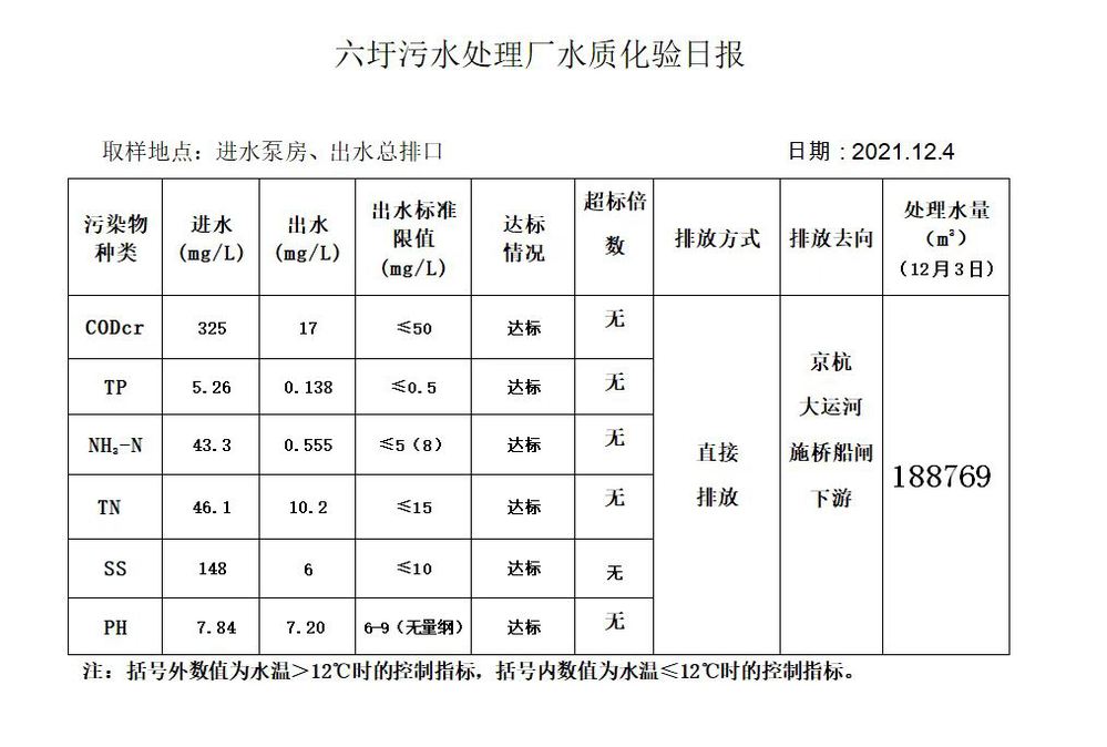 六圩污水处理厂水质化验日报(2021.12.4)