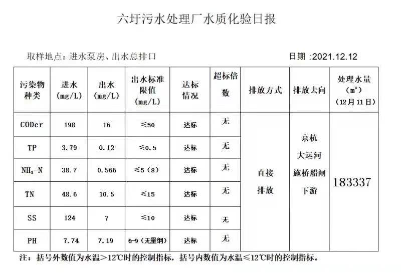 六圩污水处理厂水质化验日报(2021.12.12)