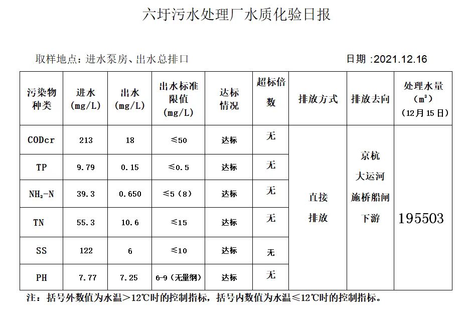 六圩污水处理厂水质化验日报(2021.12.16)