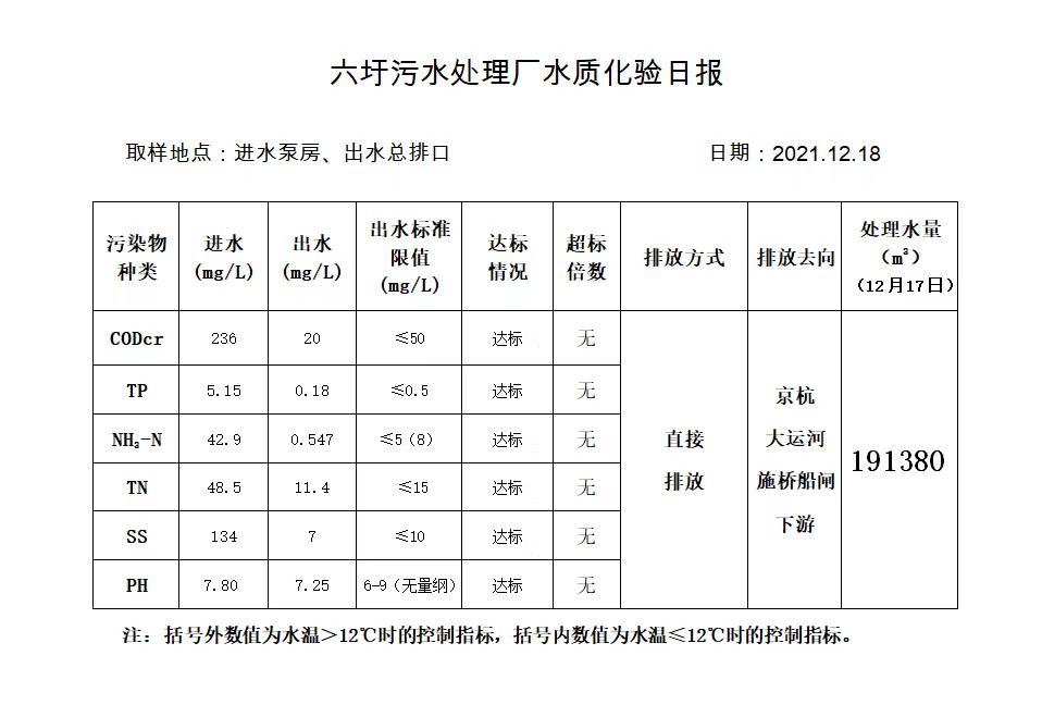 六圩污水处理厂水质化验日报(2021.12.18)