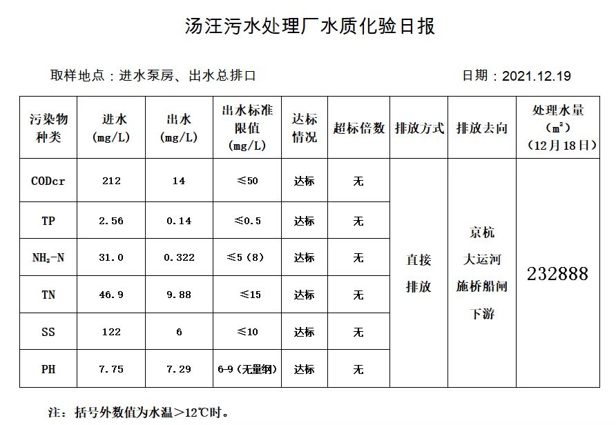 汤汪污水处理厂水质化验日报(2021.12.19)
