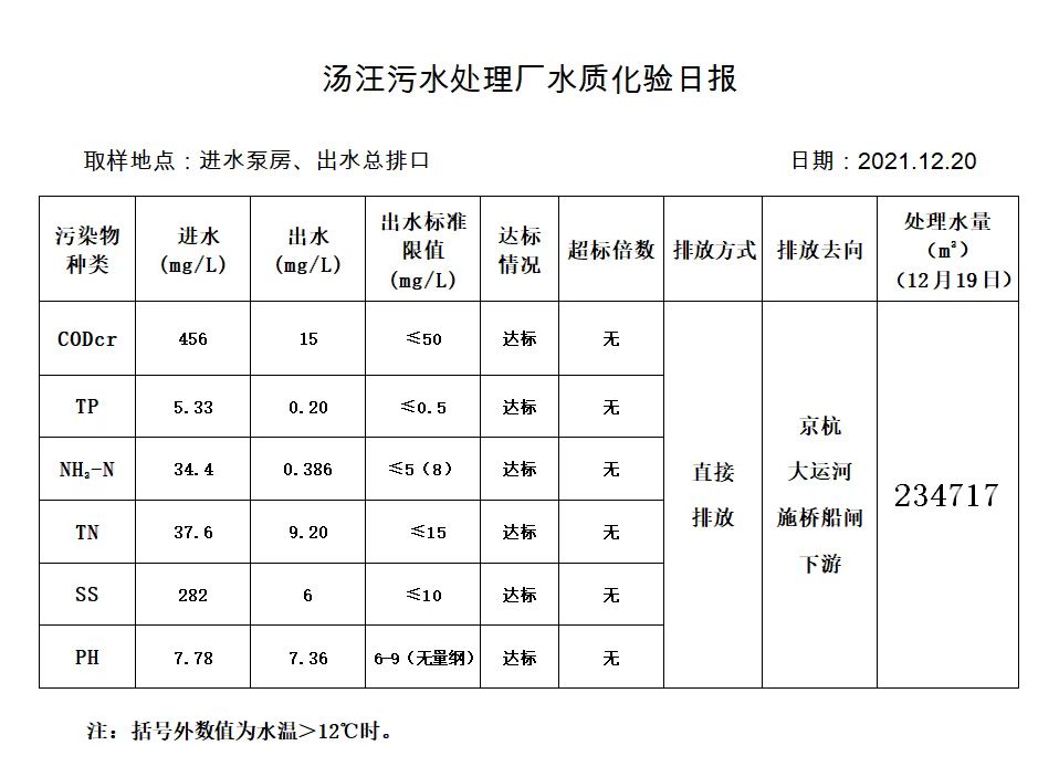 汤汪污水处理厂水质化验日报(2021.12.20)