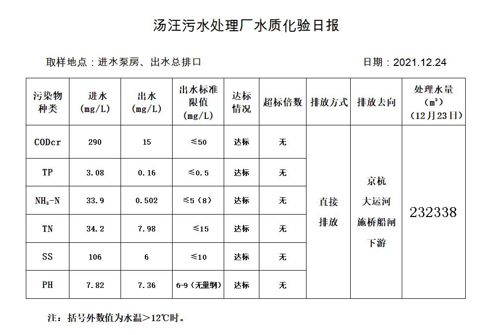 汤汪污水处理厂水质化验日报(2021.12.24)