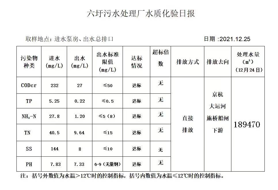 六圩污水处理厂水质化验日报(2021.12.25)