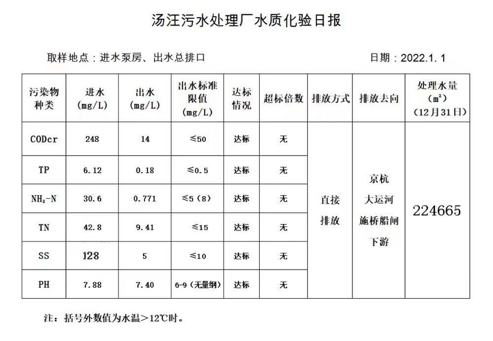 汤汪污水处理厂水质化验日报(2022.1.1)